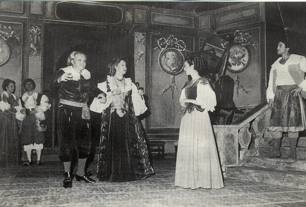 The opportunity presented itself in France for the theater of Neuilly in 1985. Virgilio did the sets and designed the costumes for "L'avare" by Moliere.
