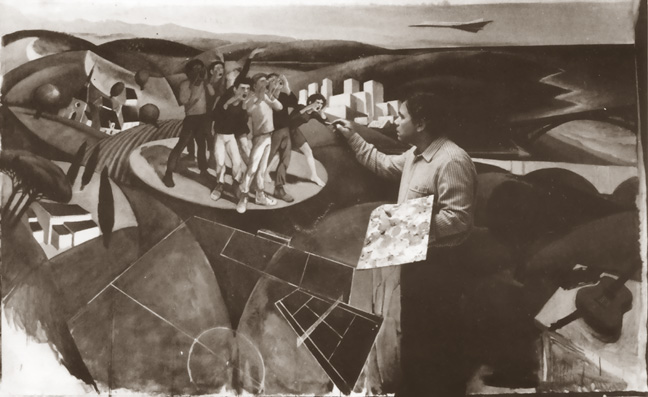The fresco of Lattes, in 1993, is the most documented. It is a canvas painted in oil and fixed on a convex wall of 8 m. x 3 m. adorning the marriages living room from the mayor house of Lattes, in south of France.