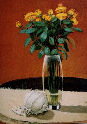 Les roses jaunes sur fond rouge H s Toile, 50x70cm